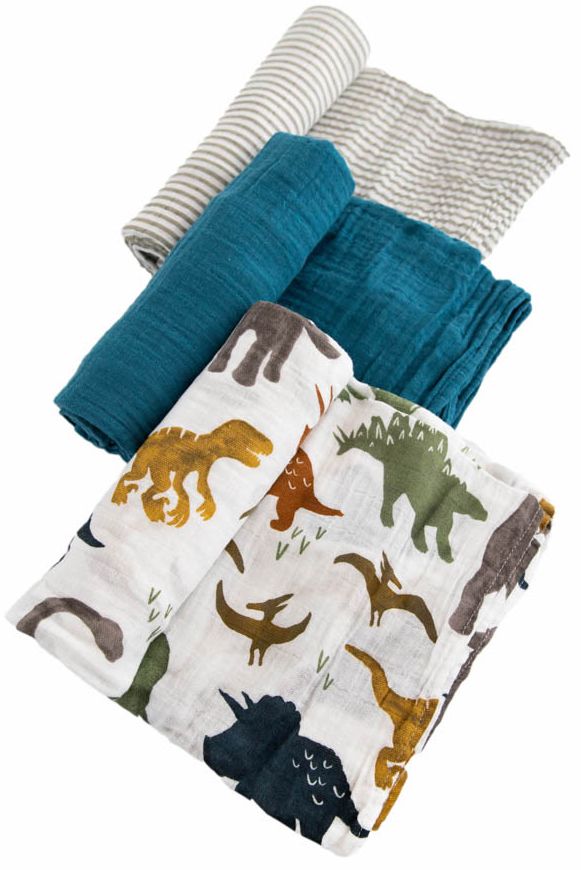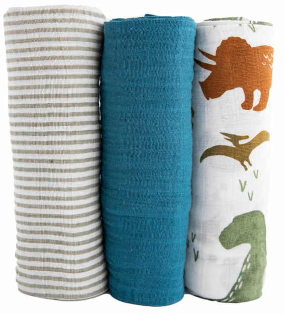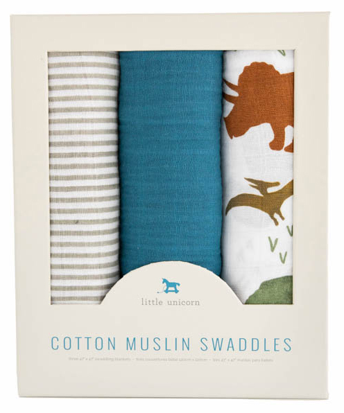 Little Unicorn Cotton Muslin Swaddle 3 Pack - Dino Friends 2 set