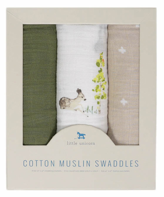Little Unicorn Cotton Muslin Swaddle 3 Pack - Oh Deer 2 Set