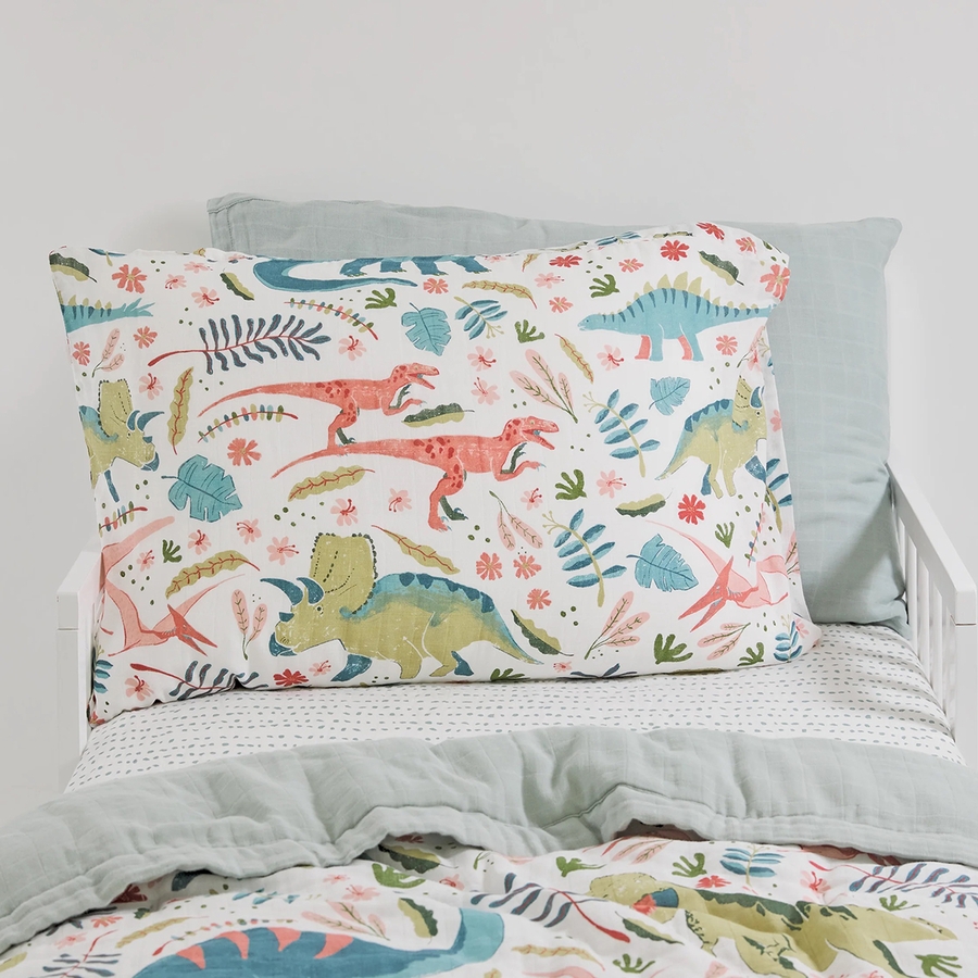 Little Unicorn Cotton Muslin Toddler Pillowcase, 2 Pack - Boho Dino