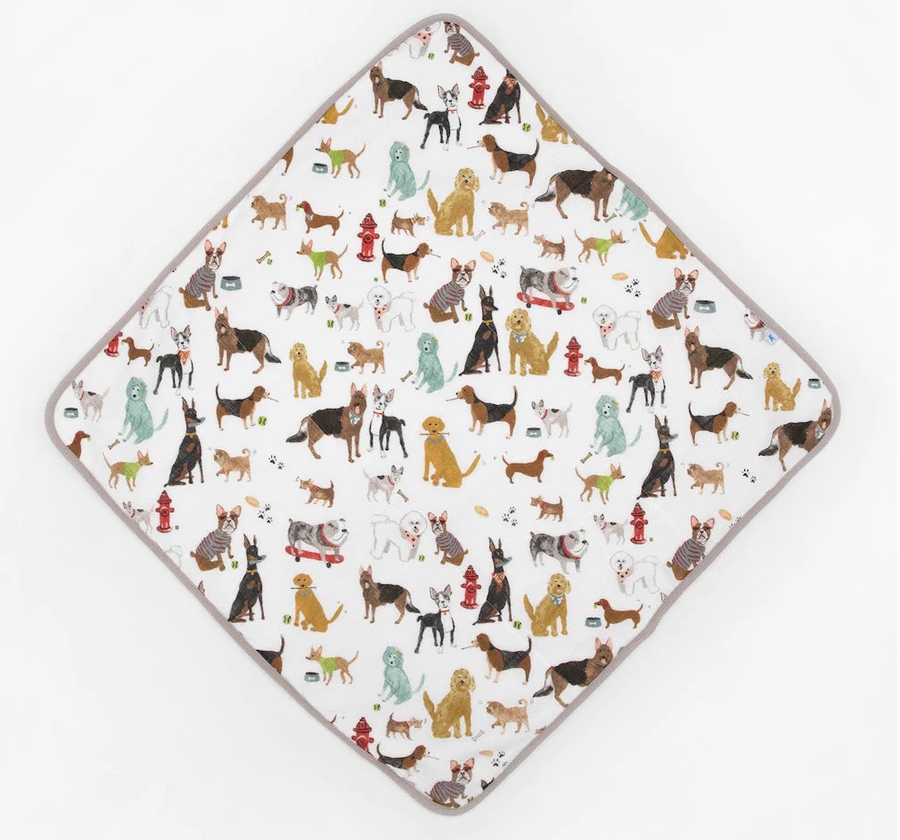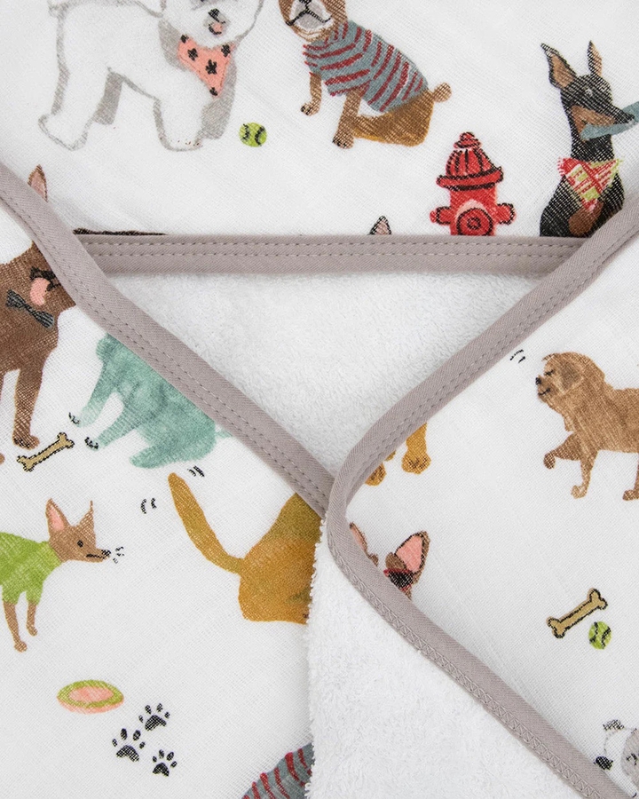 Splash into bath time with a plush and absorbent hooded towel. Featuring a cozy hood the hooded towel is crafted with printed muslin on the outside and ultra-soft terry cloth on the inside.