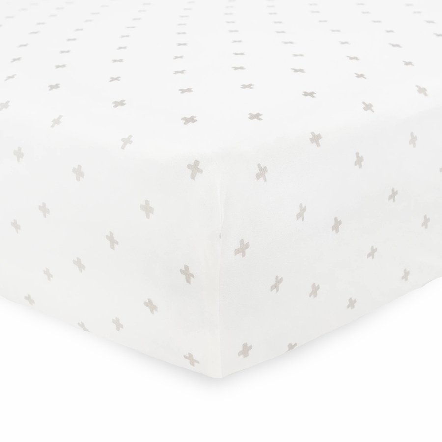 Little Unicorn Stretch Knit Crib Sheet - Grey Cross
