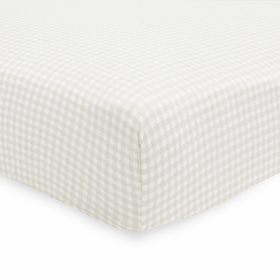 Little Unicorn Stretch Knit Crib Sheet - Tan Gingham