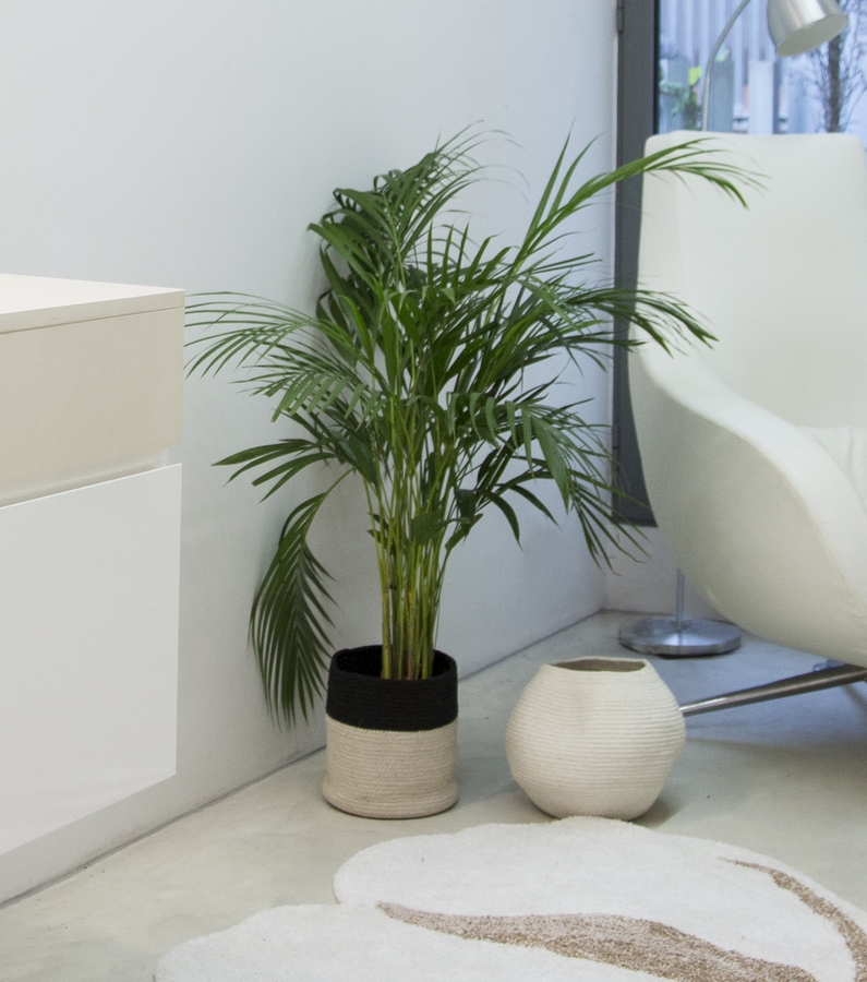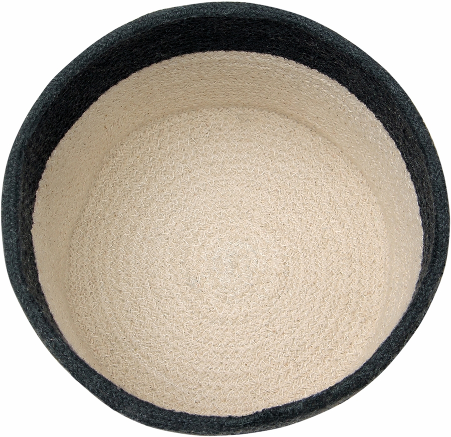 Mini-basket in Natural color and black border. The purpose of this smaller basket is to store small objects such as keys, pens, coins, etc. Every single decorative basket has been made one per one, so that there are not two equal baskets. SIZE: 9" x 8"