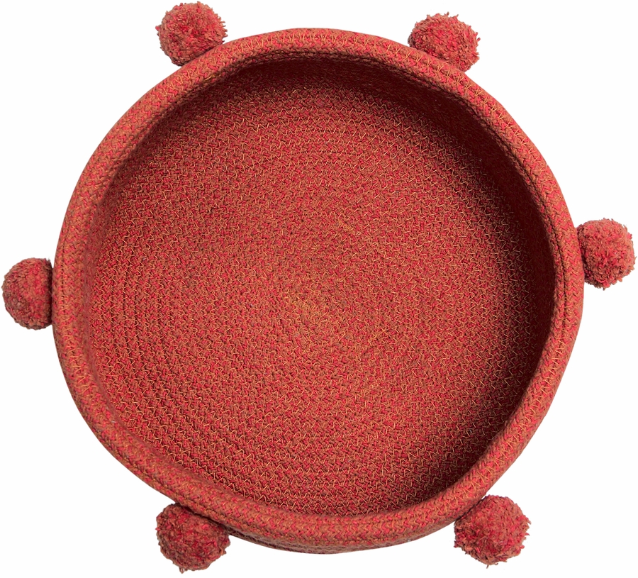 New sewing techniques have been used to create this new braided cotton basket. Made from mixed Natural and Light Brown yarn, it has cotton balls stitched to the exterior. We can consider this basket as a deco home accessory and as a storage complement. Also, it has an extra function because this basket could be used as a tray. We can say that this decorative basket is a must for interior design and home decor. SIZE: 5" x 1'