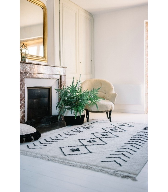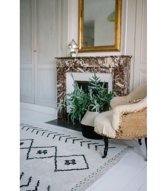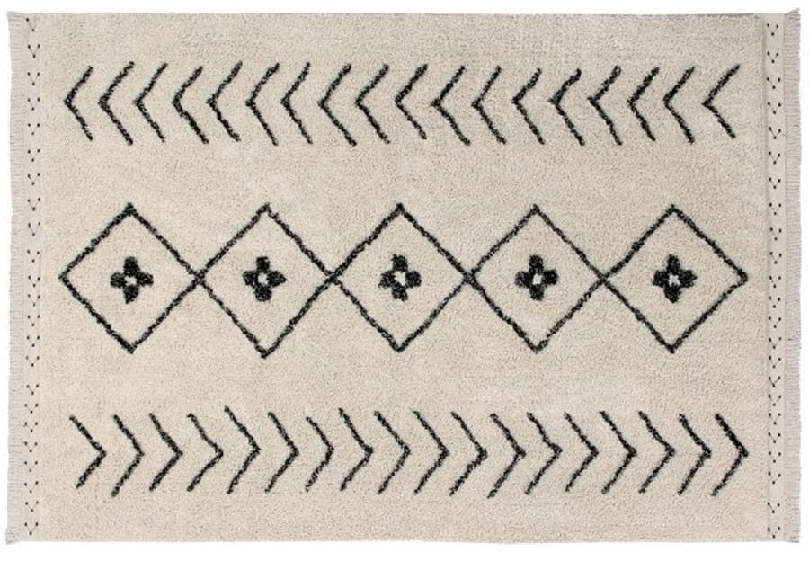 100% washable cotton rug, suitable for machine wash (8 kg capacity for 120x160 cm, 9 kg for 140x200 cm). With a natural cotton-colored base, once washed, it is dye-free.