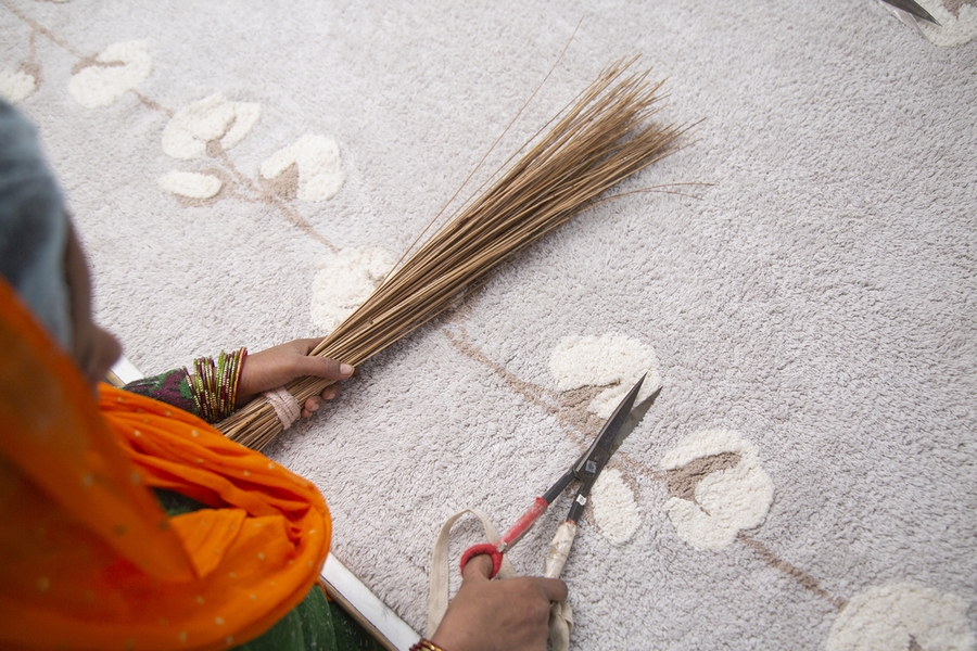 This washable rug has been designed with different textures to give volume to the details, giving a mixed fibres effects and a more realistic design. Being a handmade rug, small differences in shapes can be produced in each decorative rug. The artisanal quality brings simplicity and elegance to home decor.