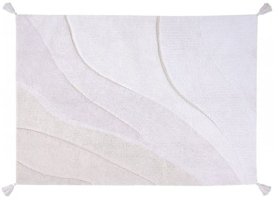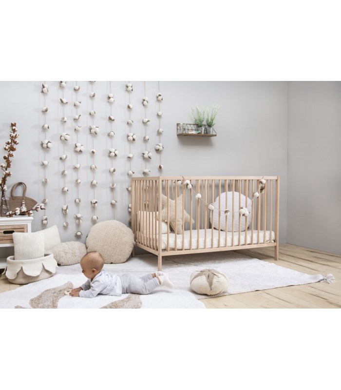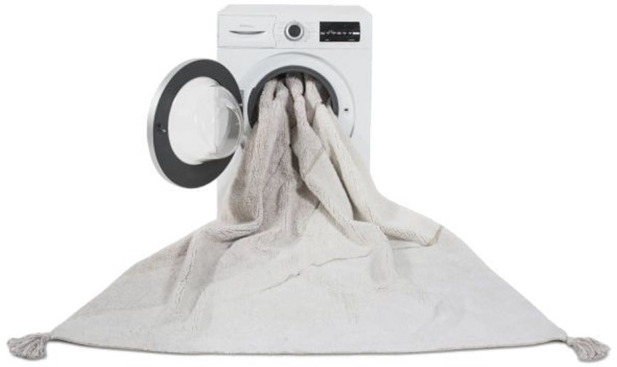 This natural cotton rug has been made in mixed Ivory, Natural and Pearl Grey yarns, forming a soft shades pattern, creates a ?mixed fibres? effects and a more realistic design. It contains cotton pompons in each corner. Being ideal for children's rooms, this new washable rug will also fit beautifully in other rooms, like bathrooms, halls, living rooms, etc. Handmade production of each rug makes every washable rug unique.