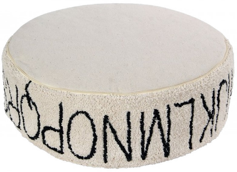 Have fun and learn with the round ABC pouf in natural base color and the letters of the Alphabet in black all around the side. It is stackable and allows you to have an extra place without taking up space. it has a zipper to remove the case and wash it at home.