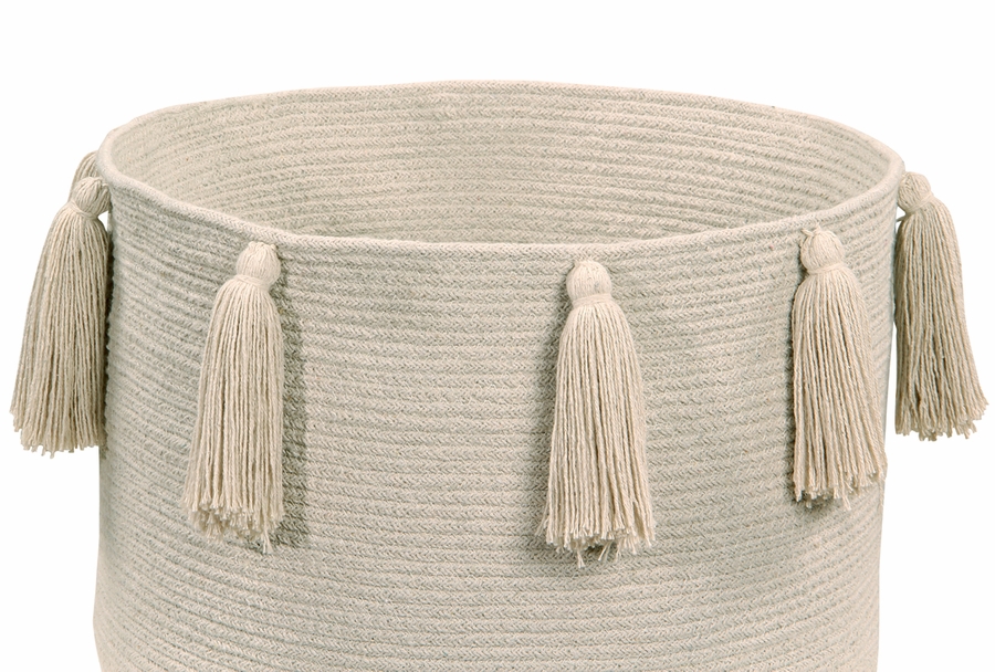 The Tassels cotton basket is the solution for storing all manner of things like toys, books, magazines, blankets, plants, etc. This 100% cotton basket is braided, lending it its circular shape, and hand-made by our craftspeople; it is the perfect choice for any setting in need of extra storage, including children's bedrooms, living rooms, dining rooms, entrance halls, patios and gardens. The tassels lend a casual and cheerful touch to this unfussy and fun design. Available in 11 single-tone colors, ranging from fresh and vibrant colors to subtle and vintage. This model combines with all our rugs, cushions, blankets and wall hangings.