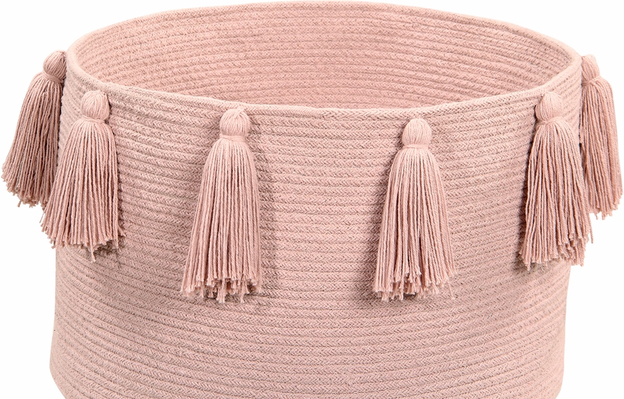 The Tassels cotton basket is the solution for storing all manner of things like toys, books, magazines, blankets, plants, etc. This 100% cotton basket is braided, lending it its circular shape, and hand-made by our craftspeople; it is the perfect choice for any setting in need of extra storage, including children's bedrooms, living rooms, dining rooms, entrance halls, patios and gardens. The tassels lend a casual and cheerful touch to this unfussy and fun design. Available in 11 single-tone colors, ranging from fresh and vibrant colors to subtle and vintage. This model combines with all our rugs, cushions, blankets and wall hangings.