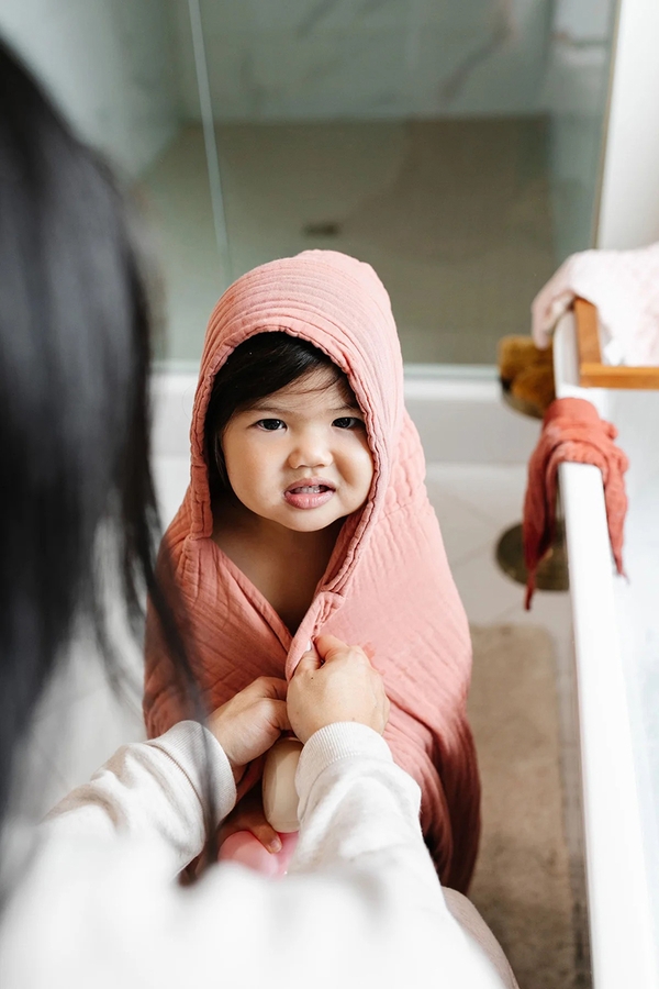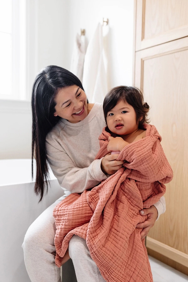 Wrap your little one in the cozy embrace of our Toddler Hooded Bath Towel, crafted from our signature Cloud Muslin™ fabric. This towel is not only gentle on your baby's delicate skin but also boasts exceptional absorbency, whisking away moisture to keep them warm and dry. The playful hood adds an element of fun, making it a must-have in your baby's bath time routine.
