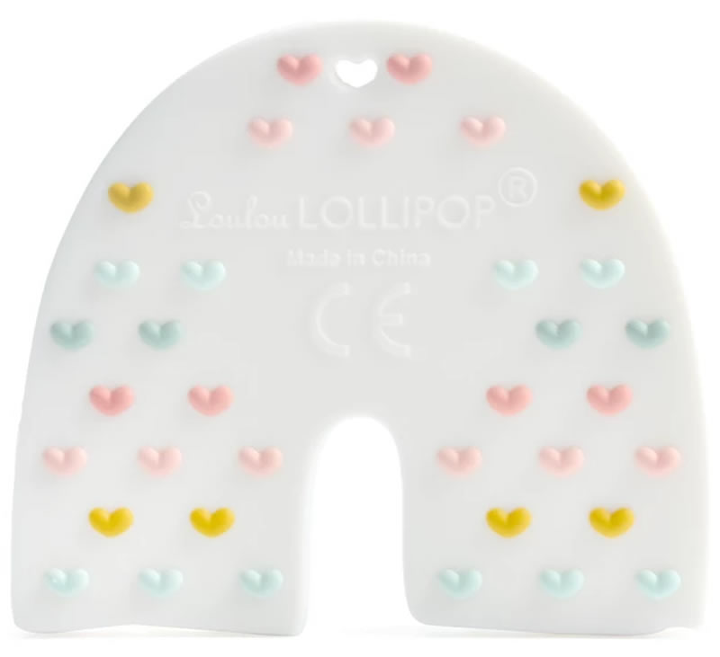 A healthy baby born after a previous loss is known as a rainbow baby?and with good reason! Rainbows typically follow a storm, giving us hope of what?s to come. The perfect accessory for that special rainbow baby in your life, this colorful teether offers a full spectrum of relief for sore gums. Made of food grade silicone, it features nubby textures on both sides and a heart-shaped cutout for attaching an optional clip. Dreams do come true.