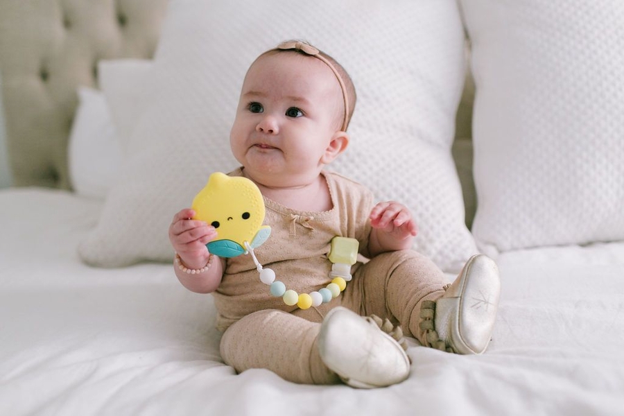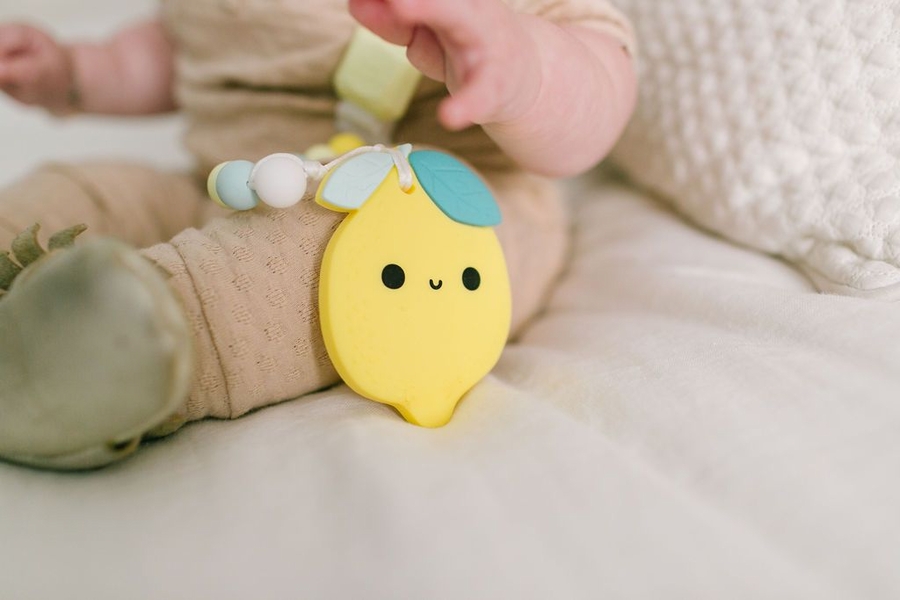 Loulou Lollipop Silicone Teether with Clip - Lemon