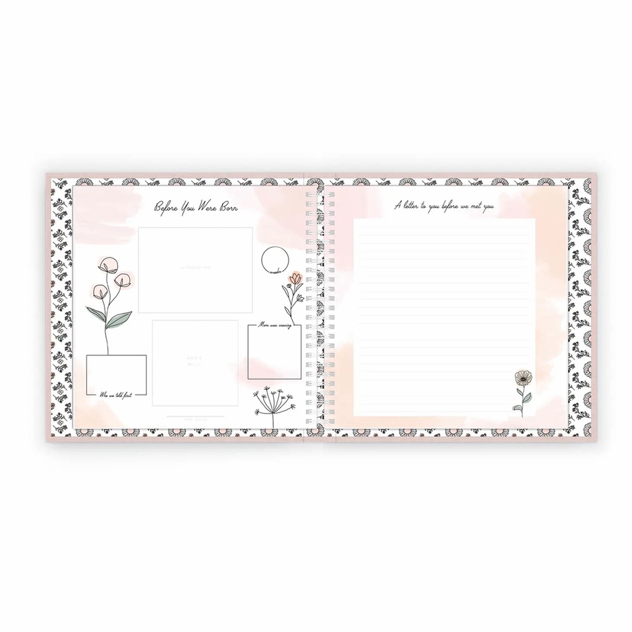 Wildflower Meadow Luxury Memory Book captures each darling moment from pre-birth through 1st day of school, complimenting baby's growth with intricate florals and a delicate color palette. Cherish every special memory and milestone of baby's first year with this elegant keepsake book. Perfect for you, or as a gift to easily record and enjoy your forever memories.