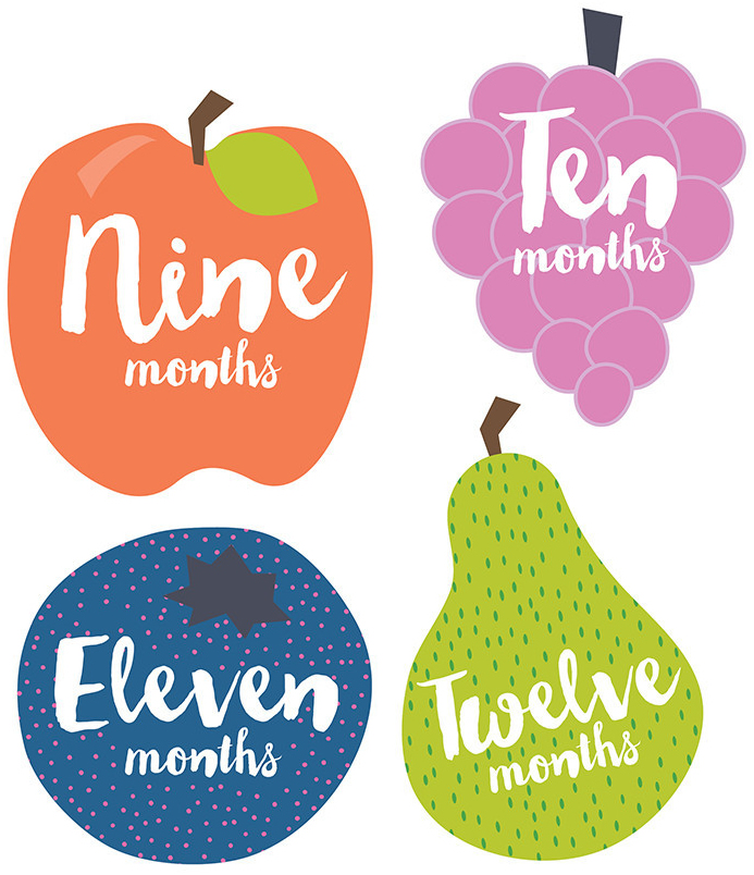 With a unique and stylish design, these neutral fruit monthly baby stickers are the perfect way for mommy to share her excitement. Start making darling moments in just three steps: Just PEEL, STICK onto the baby's clothing and CLICK with your camera!