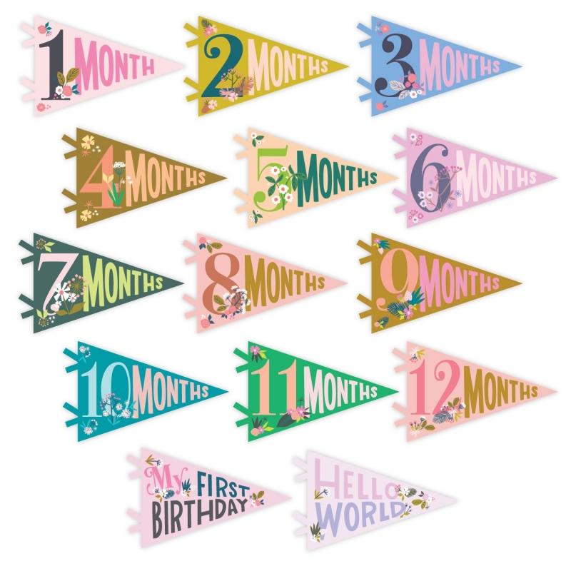 Document your baby's growth with our fun and unique milestone pennants! Our Little Artist floral design is the perfect monthly photo prop to help you remember baby's first year!