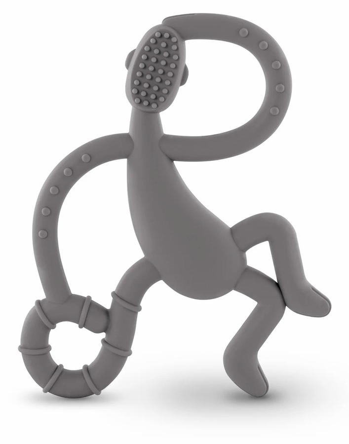 This flexible, chewable multi-textured teether helps soothe sore gums and keep babies happy and calm. Our Dancing Monkey Teethers come in several fun colors and are big enough for toddlers, yet small enough to take with you wherever you go.