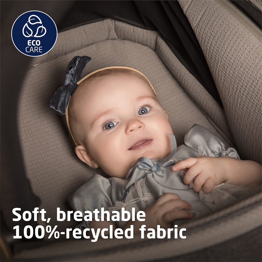 The Carriage Accessory is designed with EcoCare, our new premium, future-friendly, 100%-recycled fabric made from plastic bottles. The yarn produced is soft, comfortable, and breathable––providing the ultimate in style and comfort for your little one.