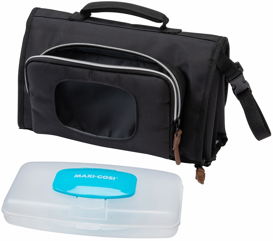 Have all your diaper changing essentials in one place while out and about. The Maxi-Cosi Clutch Changing Pad has a zip-off, hanging organizer for diapers and other changing needs, an exterior wipes compartment for easy clean-ups, and an extra thick, wipeable