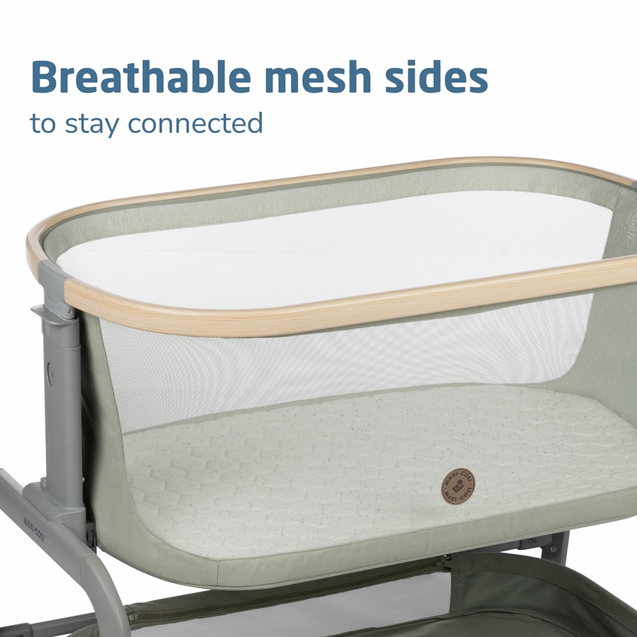 Getting your little one to fall asleep can be tricky. But with the Maxi-Cosi Iora Baby Bedside Bassinet, your little one can rest comfortably at home or wherever you travel – all within an arm’s reach. Rest time starts with the supportive mattress that offers just the right amount of comfort for nighttime sleep or daytime naps. Then there’s the breathable mesh siding that lets the air flow through and gives you a quick glimpse of your little one.