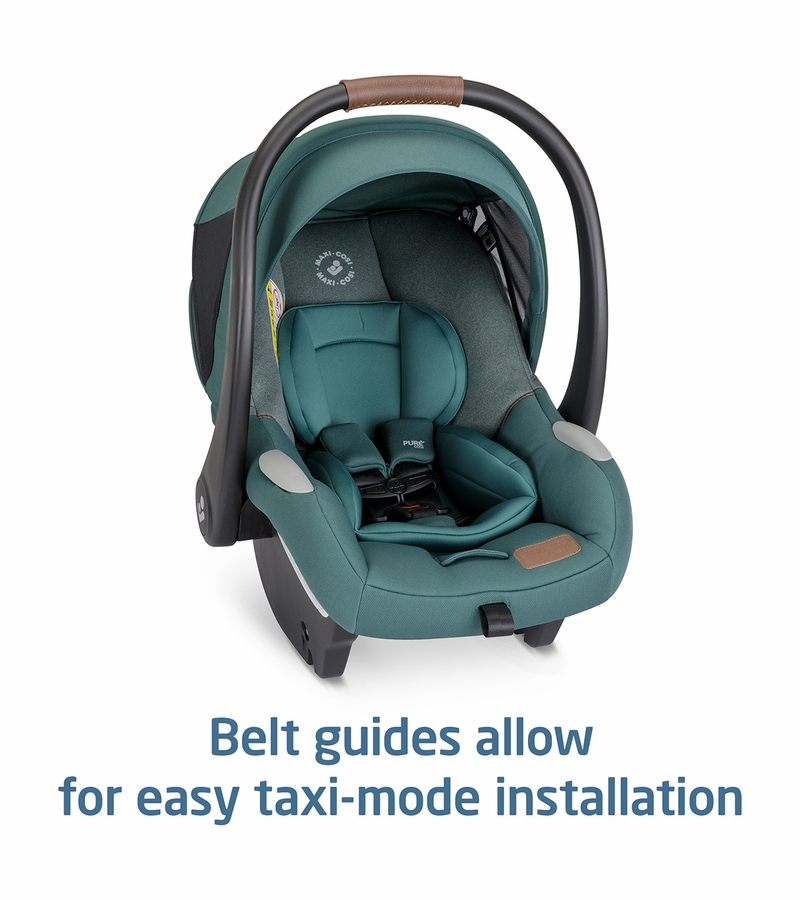 • Large, visible belt guides make installing the car seat without the base (taxi-mode) simple and intuitive