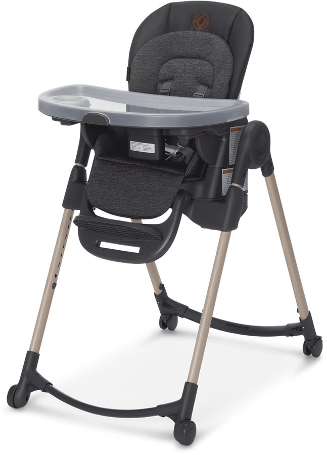 We love this high chair. Maxi Cosi thought of everything! The recline function is a must for those post lunch naps! I love how it has extra padding for comfort that can easily be removed and thrown in the washing machine. The chair itself is beautiful with gray and wood tones and is a welcome addition to our dining room. It even has locking caster wheels to make relocation a breeze! We will be able to continue using this chair thanks to its many configurations. Well with the investment!