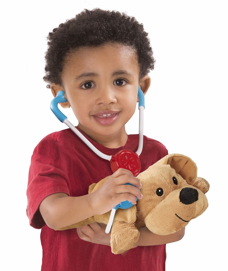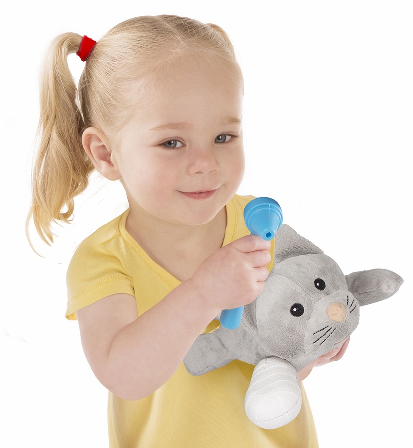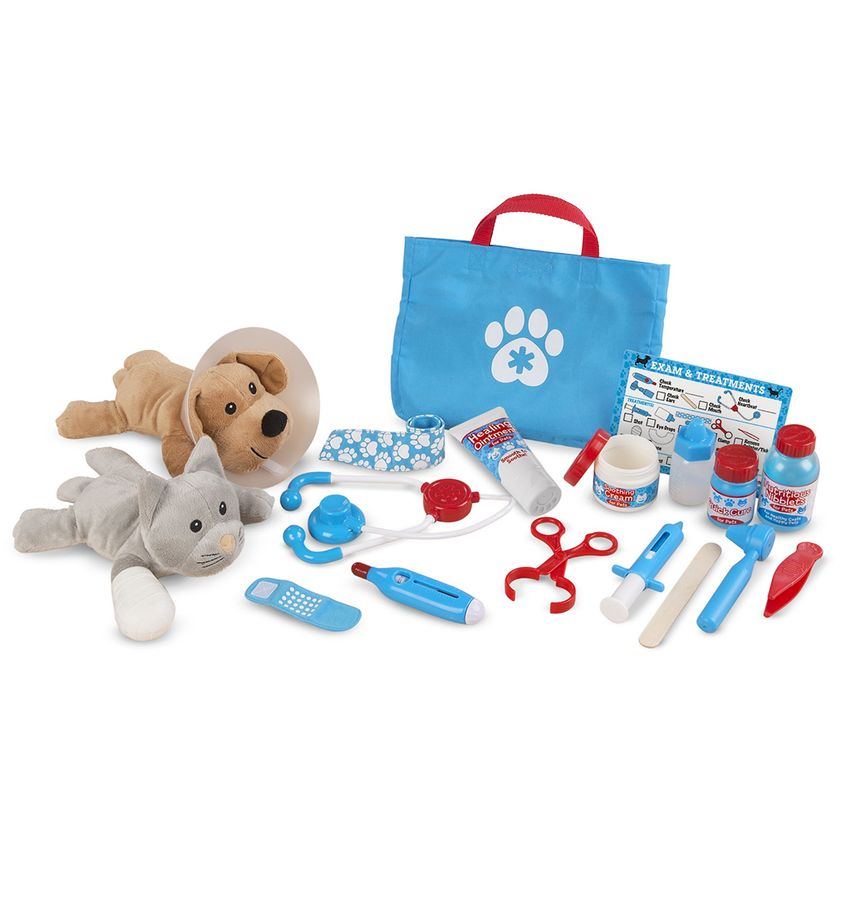 Give young animal lovers everything they need to examine and treat pretend pets! This toy was recognized by toy experts at the Good Housekeeping Institute for how it helps kids develop empathy. The 24-piece collection for aspiring veterinarians three and older comes with two adorable plush pets (a dog and a cat), and accessories galore, including a stethoscope, thermometer, syringe, ear scope, tweezers, and clamp. There are bottles, tubes, and tubs of pretend treatments and ointments, bandages and a cast for boo-boos, and even a neck "cone" to keep pets from licking! Everything, including a reusable examination checklist, stores in a handy tote bag, so little vets can make house calls!
