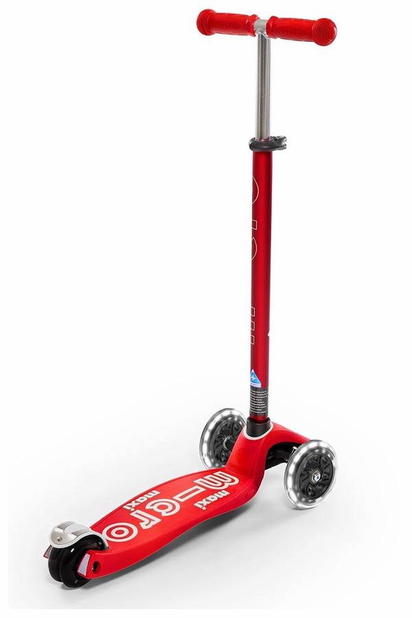 Our Maxi Deluxe LED scooter takes the multi award winning, much revered children's three-wheeled Micro scooter to the next level. This deluxe version has an anodized stem for extra protection against wear and tear, a unique, silicone-injected footplate for improved grip, and an adjustable T-bar, meaning that as your child grows, their Maxi Deluxe LED will grow with them.