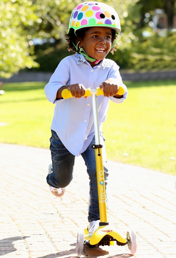 I was eying Micro Mini scooters for three months before I finally decided to purchase for my toddler. I have no regrets. The scooter was easy to set up and I’ve been letting my toddler get acclimated with it by playing with it outside every day. There is definitely a “ramp-up” for learning how to get moving for the toddler so we’re patient that he’ll get the hang of his new toy. I love that the wheels don’t turn with the handlebar — that way, the toddler has a better sense of security. I recommend getting the Micro helmet to go with the scooter!