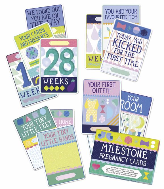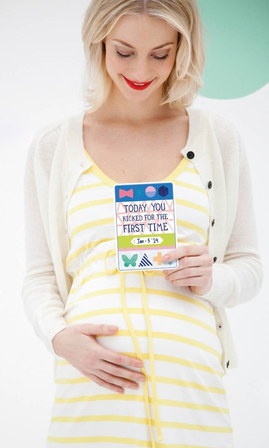 The set includes ?We found out you are on the way’, ’8, 12, 20, 28, 34, 40 weeks’, ?first kick’, ?your room’, ?we now know you are a boy/girl’, ?first outfit’, favourite toy’, ?you and your mom’, ?you and your dad’, and many more.