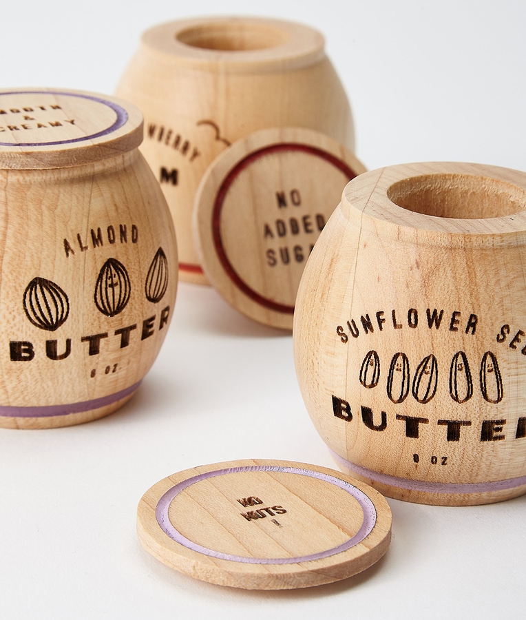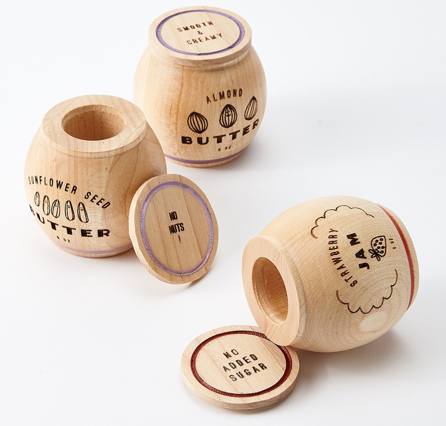 No peanuts? No problem! With our AB&J set, we've got your alternative butter and jam set needs covered. Jars open for even more interactive fun. Each set includes Sunflower Seed Butter, Almond Butter, and all-natural Strawberry Jam and comes in a beautiful cotton drawstring bag.
