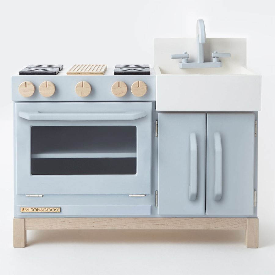 Whether your little one is whipping up an original recipe or taking first place in an imaginary cooking competition, the Essential Play Kitchen is the perfect canvas for imaginative play. A beautifully solid piece to be enjoyed day after day, our little play kitchen is as gorgeous as it is safe. Expertly crafted by Amish artisans in the USA from sustainable Baltic birch and solid North American maple, and topped with nontoxic, low-VOC, and HAPs-free finishes.