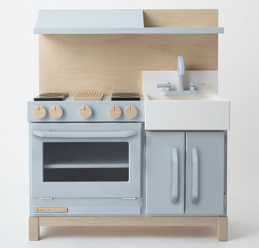Expertly crafted by Amish artisans in the USA from sustainable Baltic birch and solid North American maple, and topped with nontoxic and low-VOC finishes, the Essential Play Kitchen Hood is especially designed to expand upon our Essential Play Kitchen.
