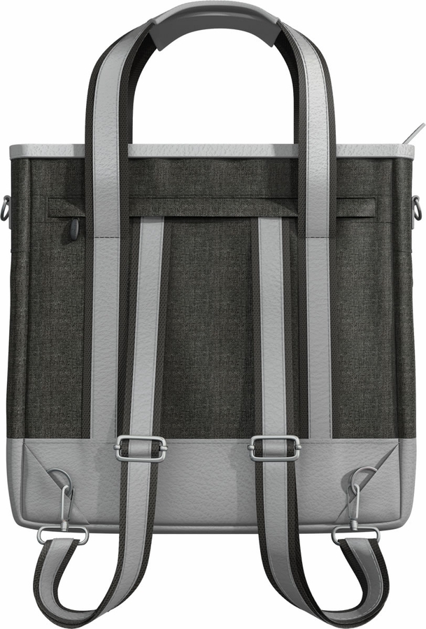 Stylish, practical and unisex changing bag for active and modern parents. Carry it as a handbag, a shoulder bag or a backpack, using the hidden shoulder straps. Unzip the expansion zipper to create more space. Several inside pockets, including a laptop pocket. Fits a 15? laptop comfortably. Includes: isothermal bottle holder, changing mat and dirty nappy holder.