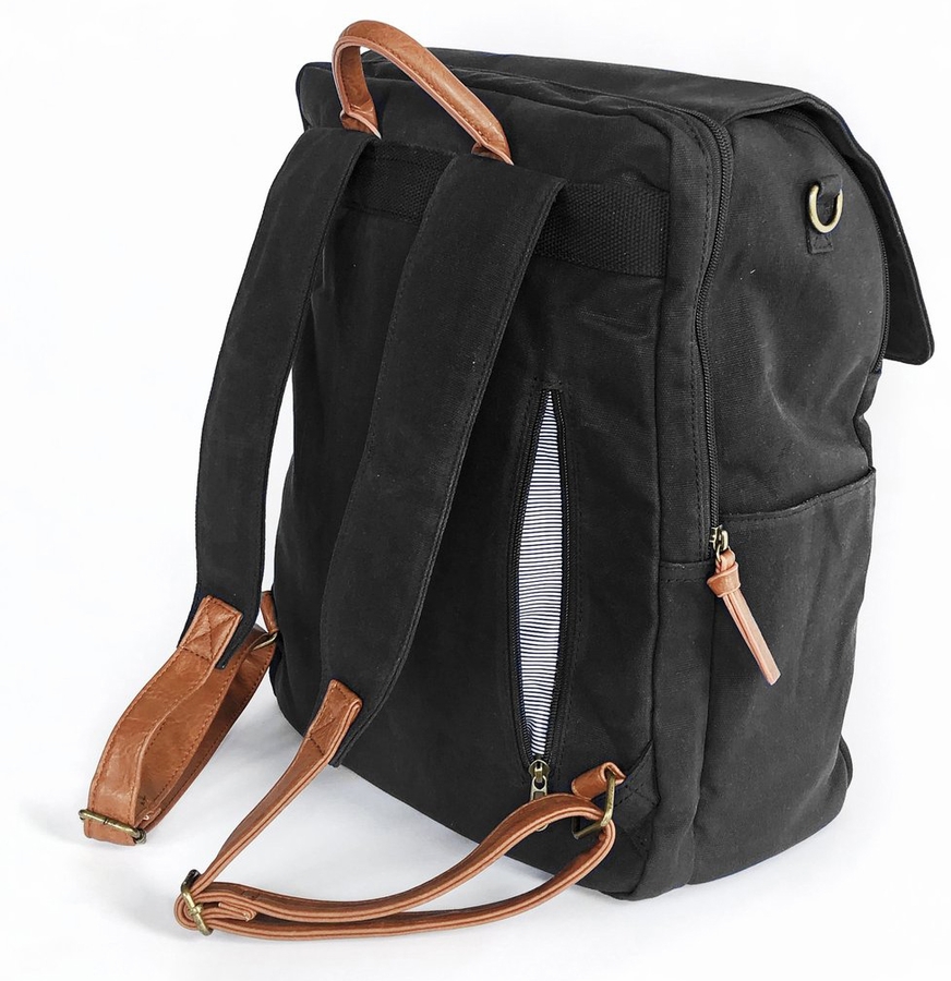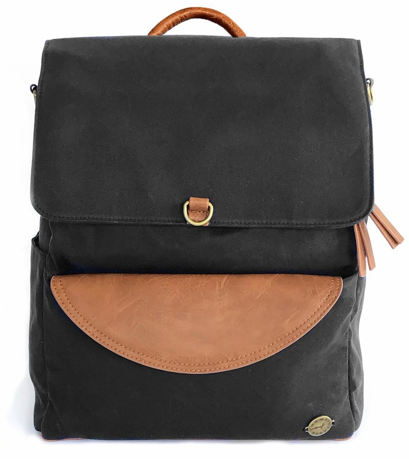 - Strong, durable waxed canvas + vegan leather