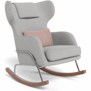 Monte Design Grand Jackson Rocker - Chrome / Performance Weave Cloud Grey Fabric / Brushed Cotton-Linen Blush Pillow
