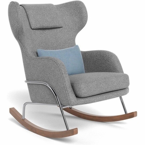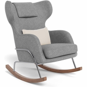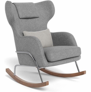 Monte Design Grand Jackson Rocker - Chrome / Performance Weave Pepper Grey Fabric / Brushed Cotton-Linen Smoke Pillow