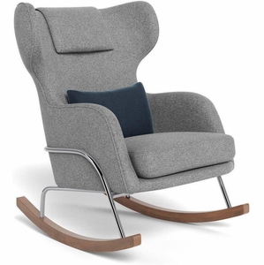 Monte Design Grand Jackson Rocker - Chrome / Performance Weave Pepper Grey Fabric / Brushed Cotton-Linen Midnight Blue Pillow