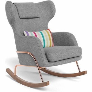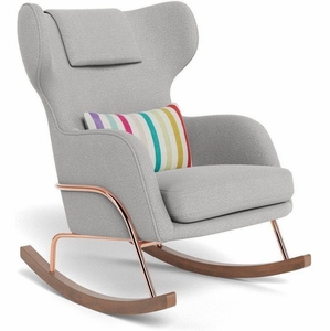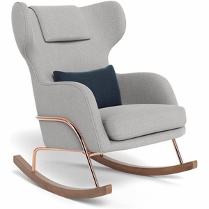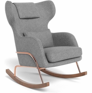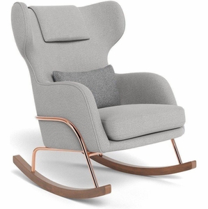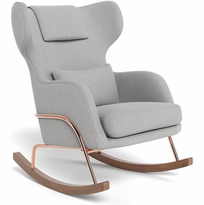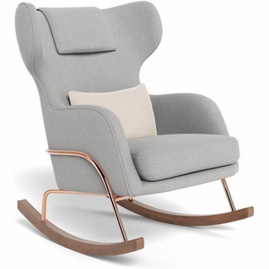 Monte Design Grand Jackson Rocker - Rose Gold Copper / Performance Weave Cloud Grey Fabric / Performance Weave Cloud Grey Pillow