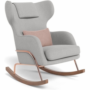 Monte Design Grand Jackson Rocker - Rose Gold Copper / Performance Weave Cloud Grey Fabric / Brushed Cotton-Linen Blush Pillow