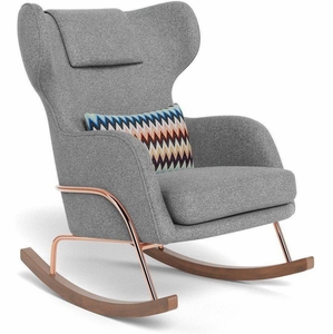 Monte Design Grand Jackson Rocker - Rose Gold Copper / Performance Weave Cloud Grey Fabric / Authentic Missoni Pillow