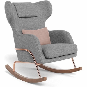 Monte Design Grand Jackson Rocker - Rose Gold Copper / Performance Weave Pepper Grey Fabric / Brushed Cotton-Linen Blush Pillow