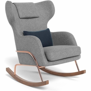 Monte Design Grand Jackson Rocker - Rose Gold Copper / Performance Weave Pepper Grey Fabric / Brushed Cotton-Linen Smoke Pillow