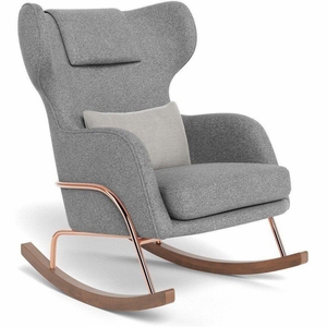 Monte Design Grand Jackson Rocker - Rose Gold Copper / Performance Weave Cloud Grey Fabric / Brushed Cotton-Linen Smoke Pillow