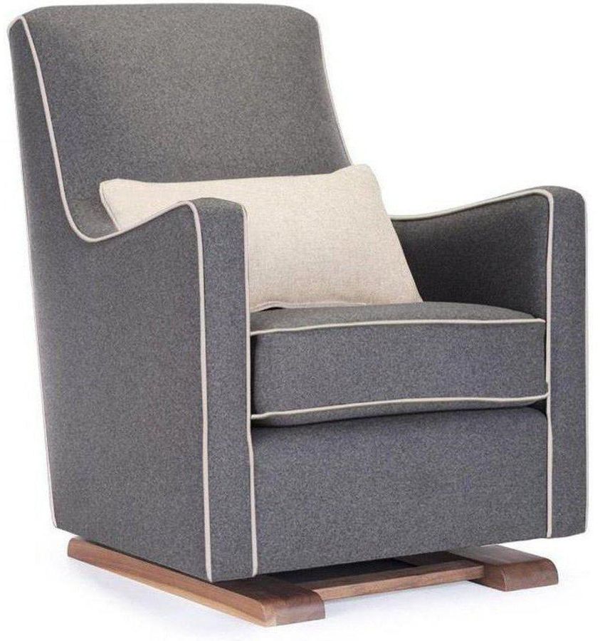 Monte Design Luca Glider - Walnut Base / Dark Grey Italian Wool Fabric / Oatmeal Piping & Pillow