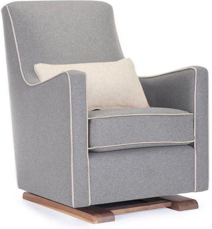 Monte Design Luca Glider - Walnut Base / Light Grey Italian Wool Fabric / Oatmeal Piping & Pillow