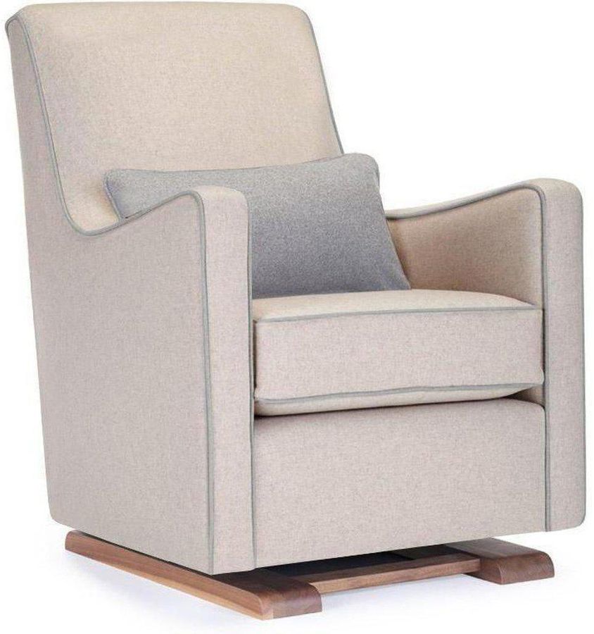 Monte Design Luca Glider - Walnut Base / Oatmeal Italian Wool Fabric / Light Grey Piping & Pillow