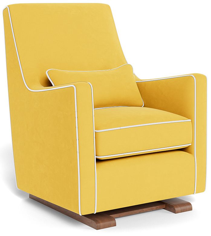 Monte Design Luca Glider - Walnut Base / Yellow Performance Microfiber Fabric & Pillow / White Piping