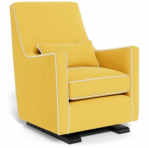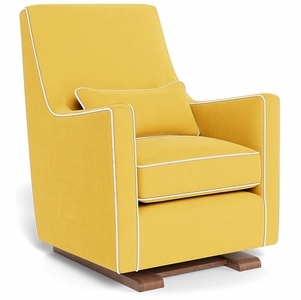 Monte Design Luca Glider - Walnut Base / Yellow Performance Microfiber Fabric & Pillow / White Piping