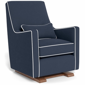 Monte Design Luca Glider - Walnut Base / Navy Blue Performance Microfiber Fabric & Pillow / White Piping